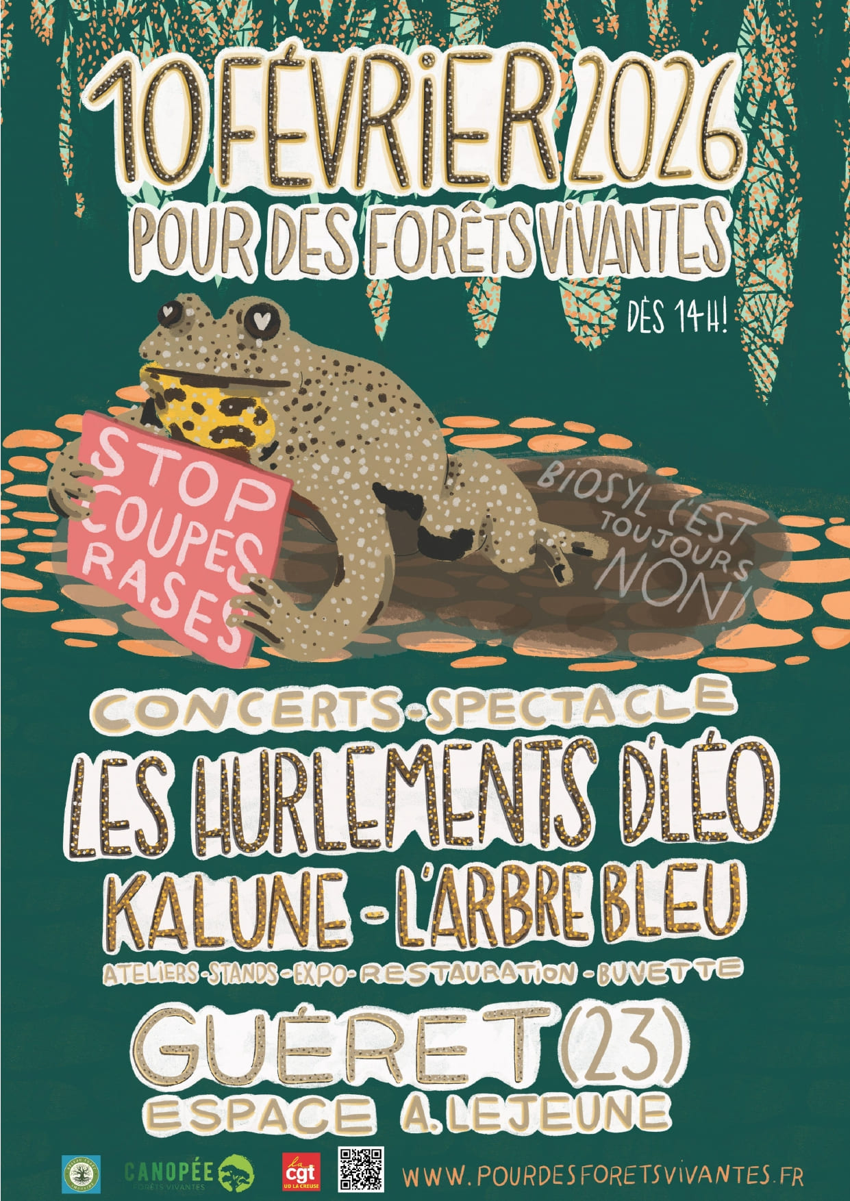Le massif forestier limousin est assailli de toutes parts. Depuis plusieurs années, les coupes rases et les plantations en monocultures se multiplient. Malgré une exploitation déjà intensive de nos forêts, de nouveaux méga-projets voient le jour. FargesBois à Egletons et Biosyl à Guéret entendent s’accaparer une ressource déjà fragile. Dans leur logique industrielle, le bois n’est pas pour nous, la forêt non plus. BioSyl veut installer une de ses usines à Guéret pour produire 85 000 tonnes de pellets par an, issus à 80 % de forêts de feuillus, et une enquête menée par Canopée dévoile qu’ils abattent des chênes centenaires pour les réduire en pellets. A Guéret, l’heure est au passage en force. La préfecture de Creuse et M. Antoine de Cockborne (patron de l’entreprise BioSyl) s’entêtent. Le samedi 5 octobre 2024, de nombreux collectifs locaux appellent à un grand rassemblement à Guéret, pour empêcher l’installation de BioSyl, enterrer l’extension de Farges et pour laisser la place aux petites unités existantes ou à venir.